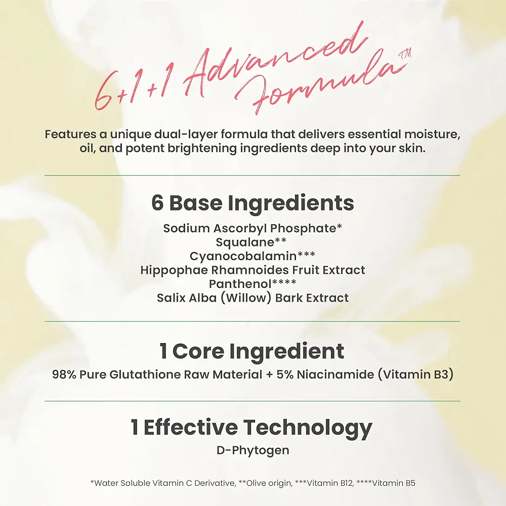 - غلوتاثيون: مضاد أكسدة قوي يفتح البشرة ويحميها من الجذور الحرة.