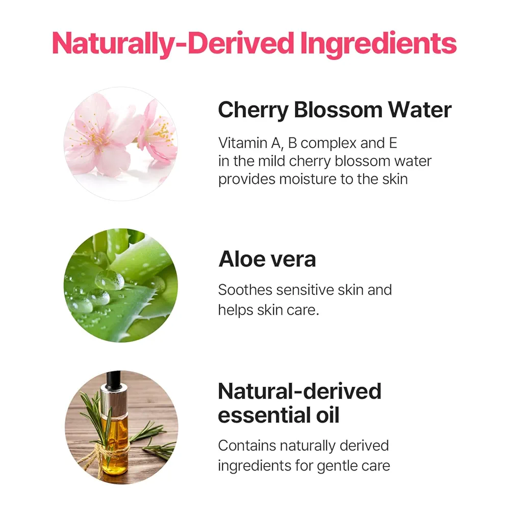 غني بـ ماء أزهار الكرز الذي يغمر بشرتك بالترطيب، ويمنحها لمسة وردية طبيعية.