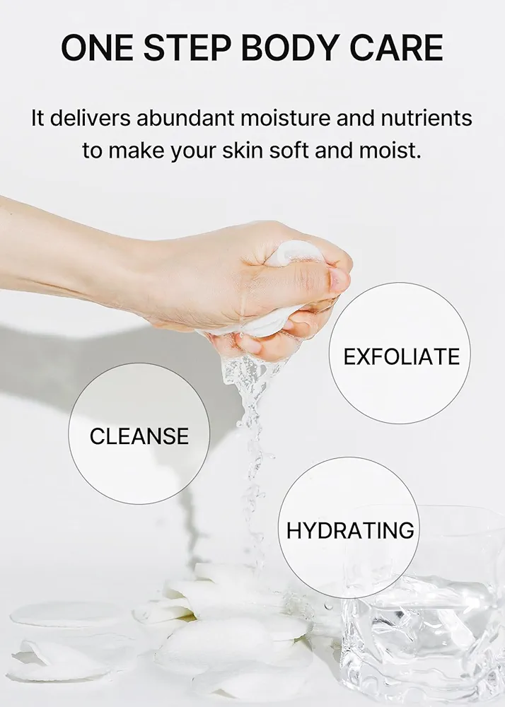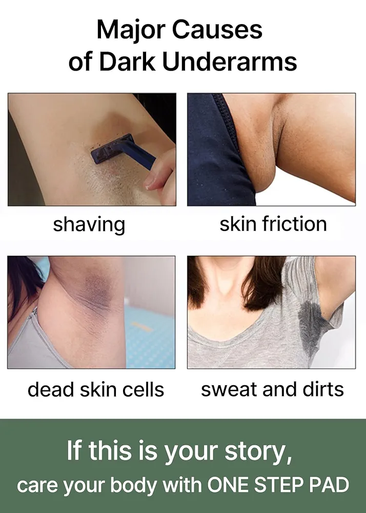 وسائد قطنية مشبعة بمكونات طبيعية تعمل على تقشير البشرة بلطف وتفتيح المناطق الداكنة مثل تحت الإبط، الركب والمرافق.