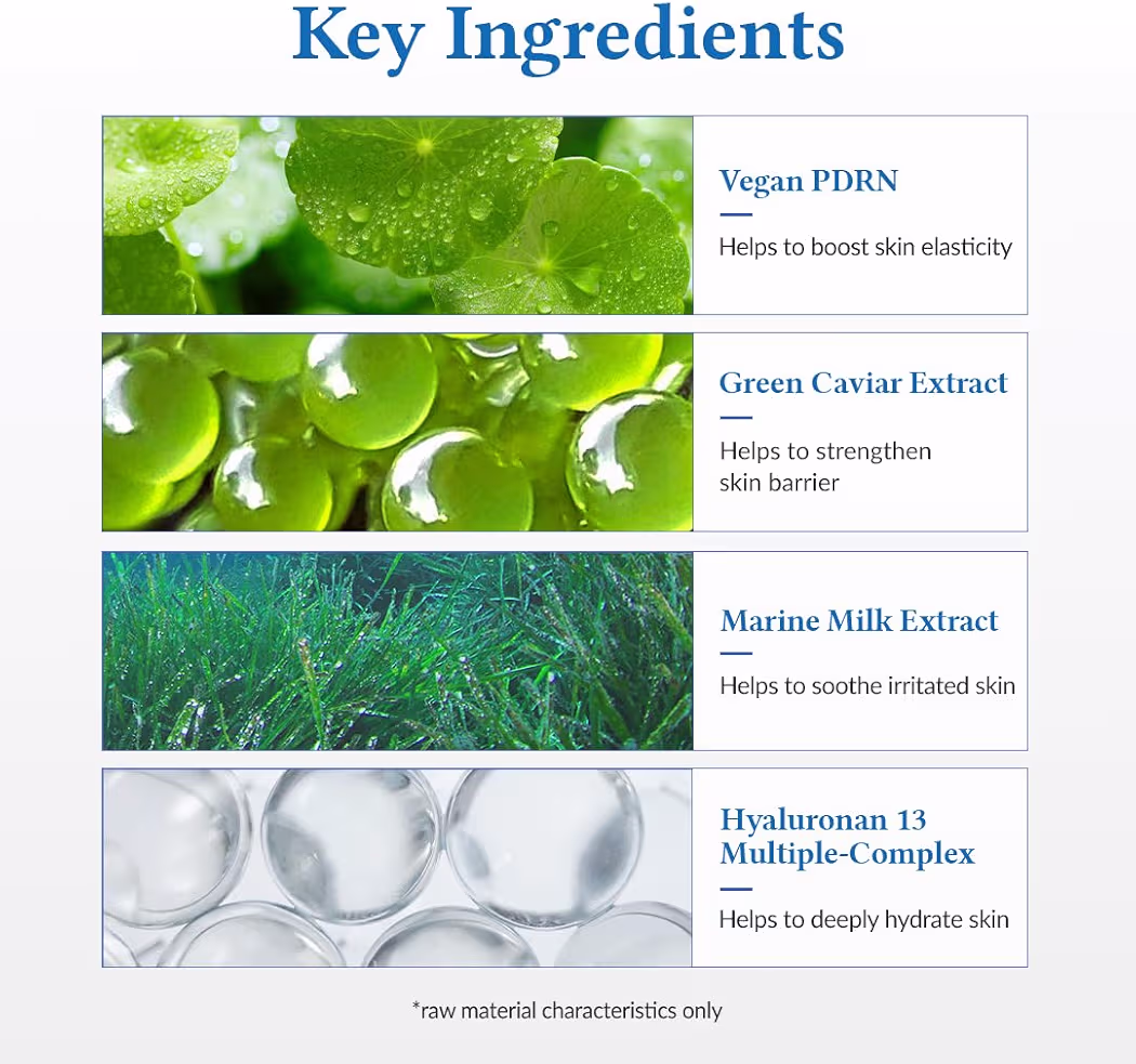- DNA Sodium + Lecithin: مكوّنات تجدد البشرة وتعزز مرونتها.