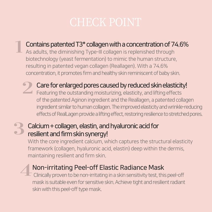 - يحتوي على أعلى تركيز كولاجين (T3 Collagen) مقارنة بالماسكات التقليدية، ليمنح نتائج أوضح وأسرع في شد البشرة.