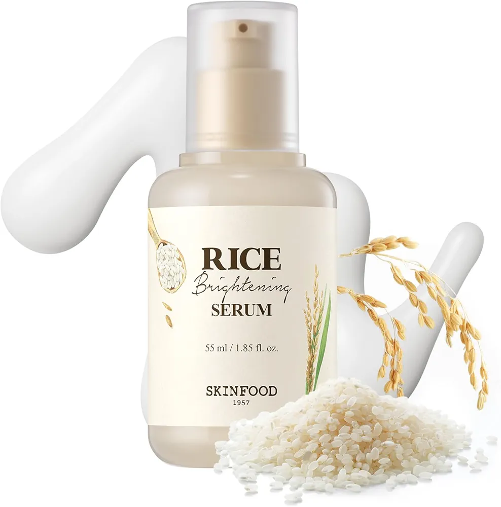 ✨ احصلي على بشرة زجاجية مشرقة مع SKINFOOD Rice Brightening Serum! 🌾