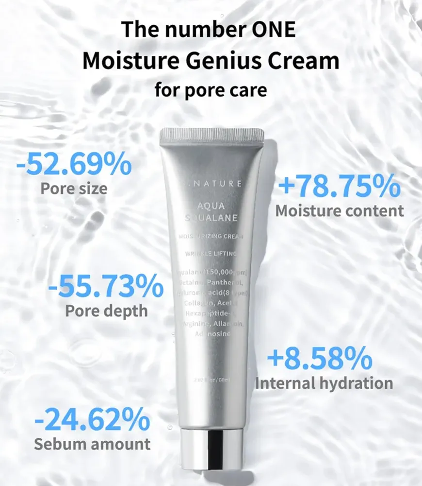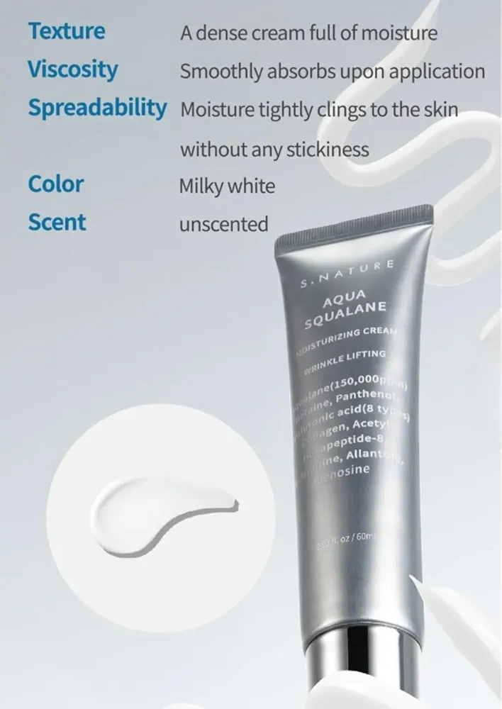 مع S.NATURE - Aqua Squalane Moisturizing Cream Jumbo، قدّمي لبشرتك دفعة ترطيب مركّزة ومغذّية بتركيبة لطيفة ومناسبة حتى للبشرة الحساسة.