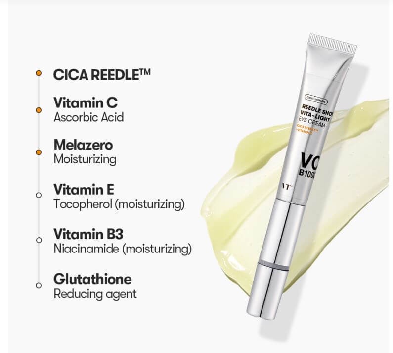 سيروم VT Reedle Shot Vita-Light Eye Cream مش مجرد كريم عيون عادي، هو علاج متكامل لتفتيح، شدّ، وتجديد المنطقة حول العين! 👀💛