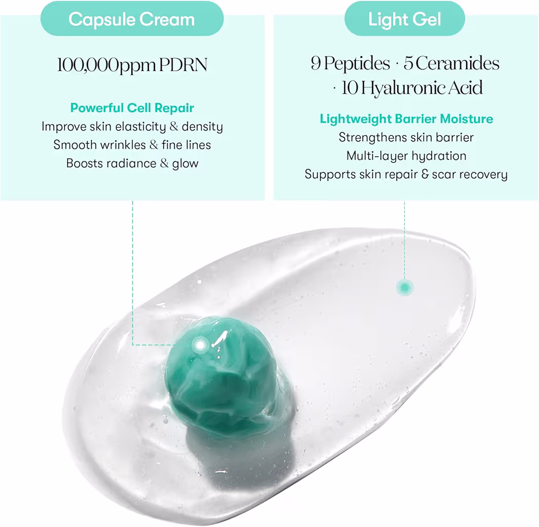 كريم جل بكبسولات PHYTO PDRN من الجينسنغ، يعزز إشراقة البشرة ويرطب بعمق، يقوي الحاجز بفضل السيراميد والهيالورونيك أسيد، ومناسب للبشرة الحساسة.