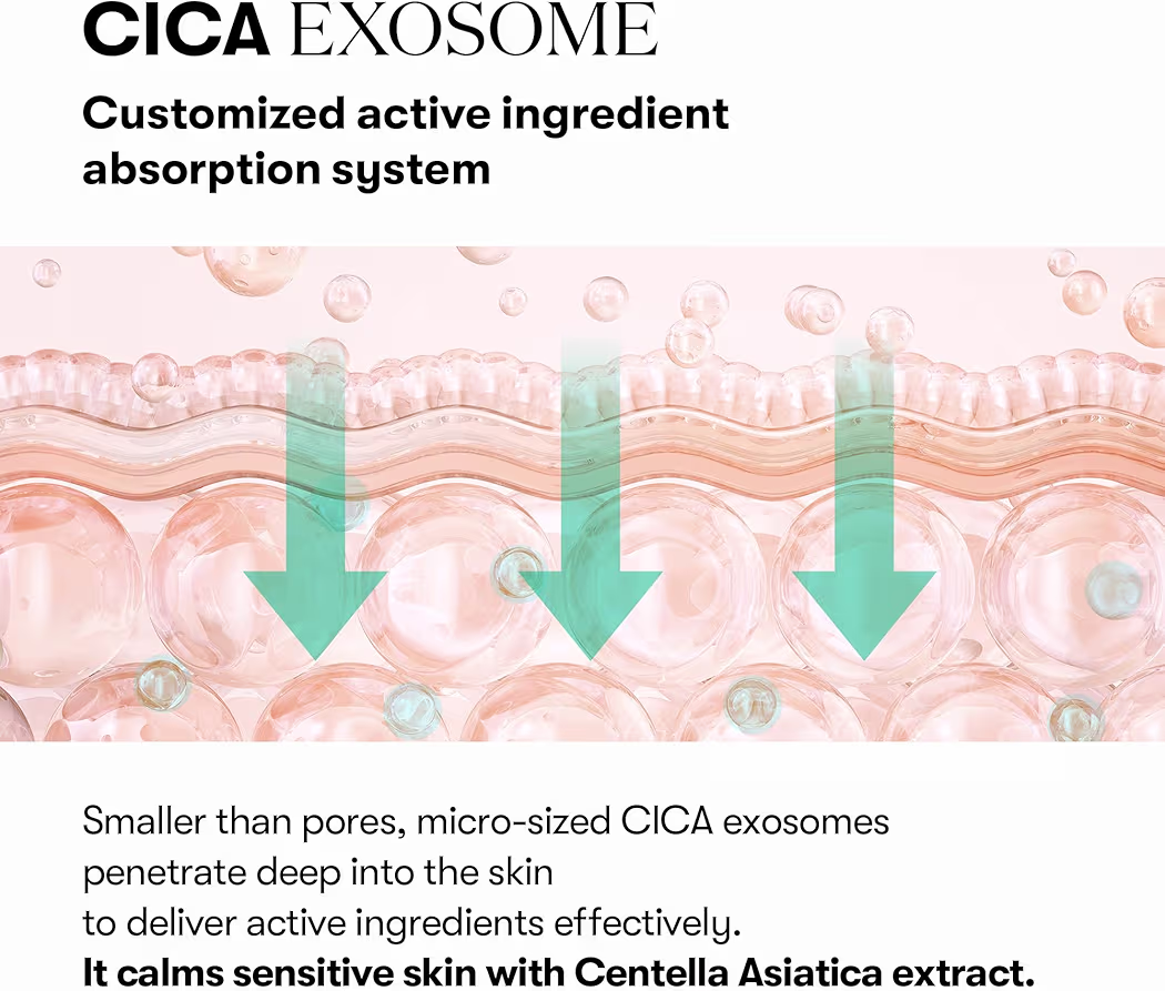 • يهدّئ البشرة بعمق بفضل Cica Exosome