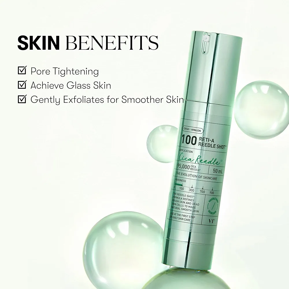 جرّبي VT COSMETICS Reti-A Reedle Shot 100، الأمبول النباتي المبتكر بتركيبة تجمع بين براءتي اختراع: CICAHYALON™ وCICA REEDLE™ لتحصلي على بشرة ناعمة، نضرة، ومفعمة بالحيوية.