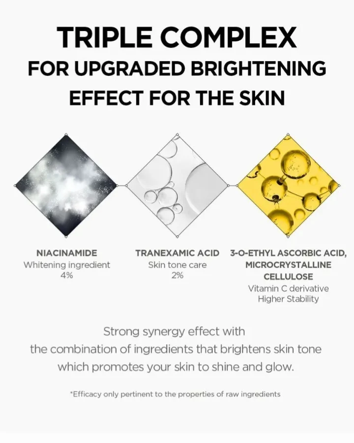 4٪ النياسيناميد، 2٪ ترانزيميك اسيد ومشتق فيتامين C اكثر استقرارا :